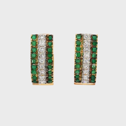 18K | Yellow Gold Emerald & Diamond Earrings | 1.52CT Emerald | 0.85CT Diamond | FG-VS