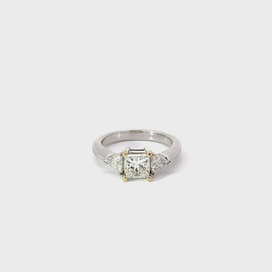 18K | White Gold Diamond Ring | 1.00CT Solitaire | 0.61CT Trillion Cut Diamonds | VVS2-H GIA