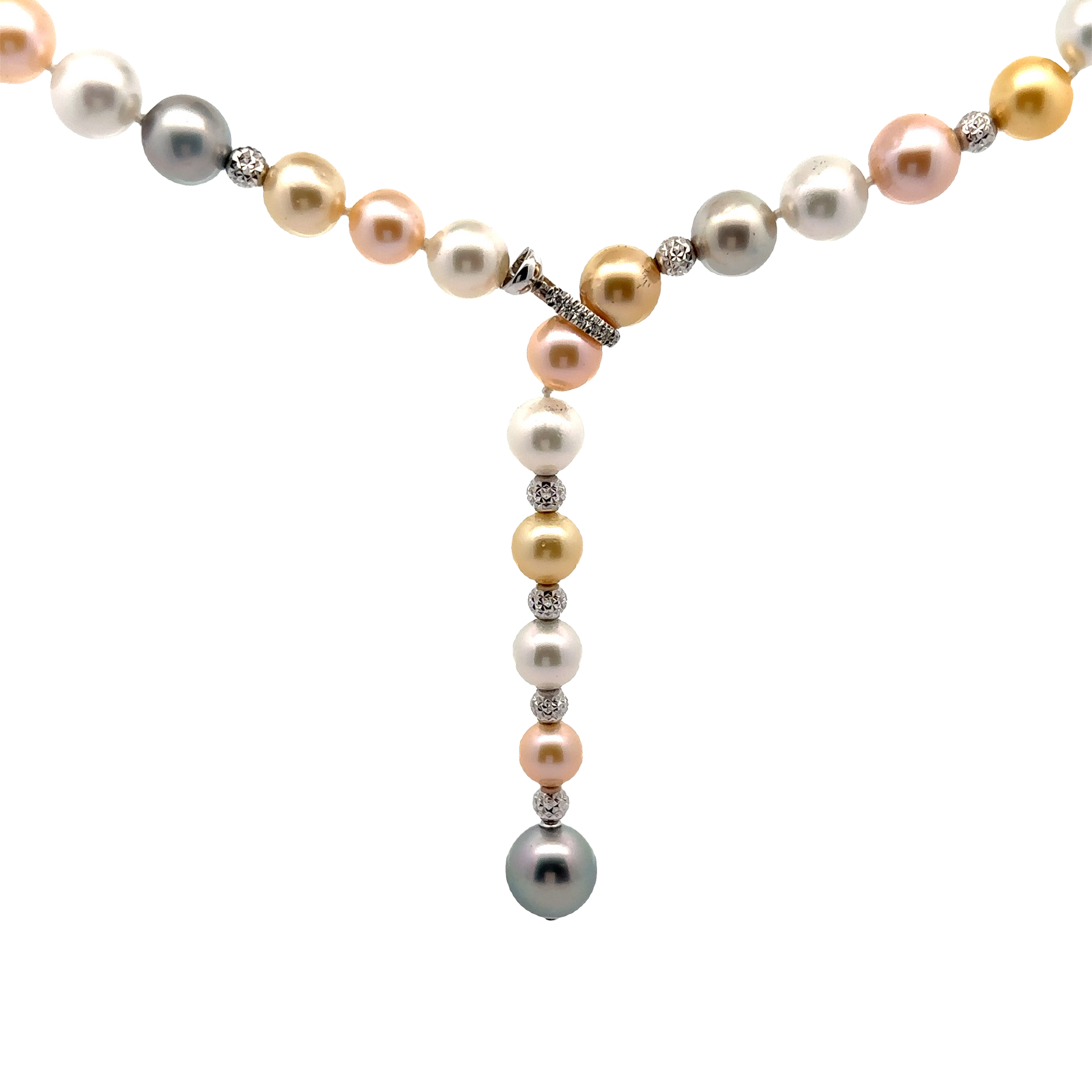 18K | Natural Color Tahitian Pearl Necklace | 0.14 CT Diamond